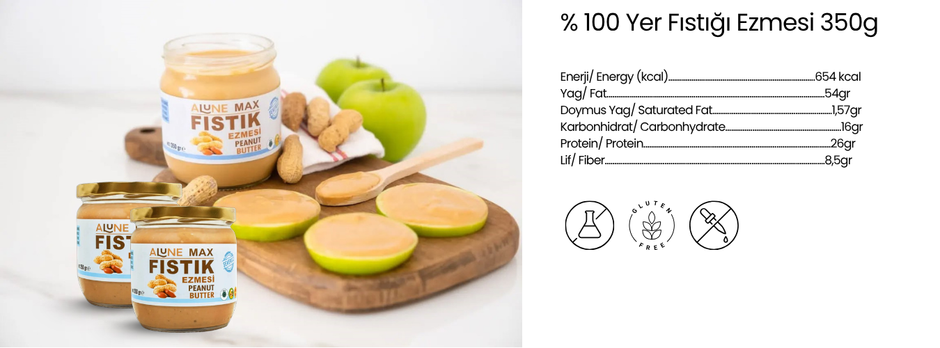 - Alune Max şeker ilavesiz doğal fıstık ezmesidir.